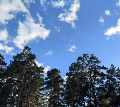 5. Рядом магазин "5", аптека, и терренкур " Бердская коса". Попробуйте найти все рисунки на коре сосен вдоль тропинок.
