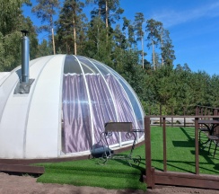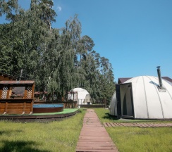 Глэмпинг «Панорама» - расположен на живописном берегу Обского моря, на территории парка отдыха «Звезда». Глэмпинг состоит из трех купольных домов, беседок и пяти сафари-тентов.