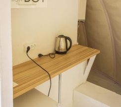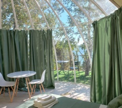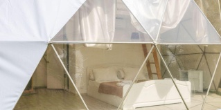 Благоустроенный дом-сфера с панорамным видом на море. В каждом доме двухместная кровать, детское место, с комфортом разместится семейная пара 2 взрослых и ребенок.