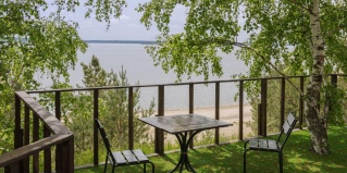 Три двухэтажных коттеджа на берегу с сауной и зоной барбюке, подойдут для семьи или компании из 8 человек. В коттедже 4 спальни, гостиная, оборудованная кухня, финская сауна и большая терраса с красивым видом на реку.