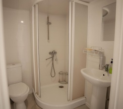 В домике две комнаты, гостиная и спальня с двухместной кроватью. В совмещенной туалетной комнате: душ, фен, комплект махровых полотенец, тапочки, шампунь, гель для душа, жидкое мыло.