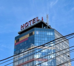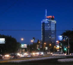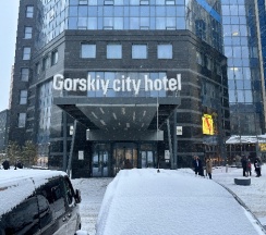 Начать хотелось бы с малого,а именно внешнего вида здания, которое даже на фоне окружающих его зданий выделяется своей высотой, "необычным" внешним видом самого здания и гигантскими буквами на крыше "GORSKIY CITY HOTEL"