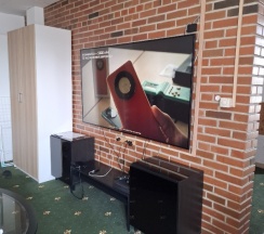 У нас был люкс (СВЧ, холодильник, стир.машинка, посуда), диван очень удобный, два телевизора (один 4к), есть приставка Playstation 4 pro))