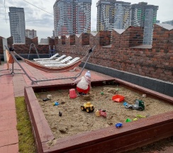 2. Так же есть небольшой бассейн на крыше. Песочница. Там оборудованы беседки. Тихо, спокойно.