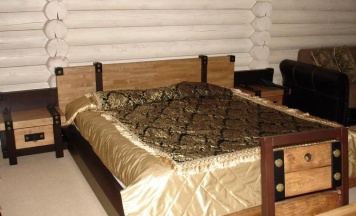 Сливочно-шоколадные тона деревянных стен, и колоритная мебель располагают к себе спокойствием и приятной уютной загородной обстановкой. Большая двуспальная кровать, журнальный столик, шкаф для одежды, обеденный стол создадут для гостей атмосферу незабываемого, беззаботного отдыха.