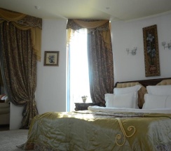 Просторный и светлый номер, с выделенной зоной гостиной, оформленный в классическом стиле и пастельных тонах. В спальне большая двуспальная кровать. Удобен для размещения одного или двух гостей с возможностью дополнительного спального места. Площадь комнат - 60 кв.м. Панорамное остекление делает помещение легким и светлым. Ванная комната оснащена Джакузи и душевой кабинкой, есть фен. Для удобного пребывания гостей предусмотрен еще один санузел. Номер идеально подходит как для проживания в нем семьей, так и для завершения торжественного дня новобрачных. А бесплатный, беспроводной выход в интернет позволит в любое время комфортно работать и отдыхать