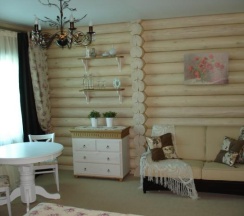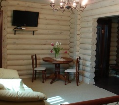 Просторный однокомнатный номер располагает к себе спокойствием и приятным уютом домашней обстановки. Неповторимый колорит создают бревенчатые стены номера, что несомненно не оставит вас равнодушными и создаст полное ощущение нахождения за городом.