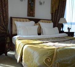 Уютный номер с большой двуспальной кроватью, обеденным столом, шкафом для одежды - располагает всем для вашего комфортного отдыха как дома. Укомплектован разовыми гигиеническими принадлежностями,феном, махровыми халатами и тапочками.Номер с телевизором, телефоном, бесплатным интернет WI-FI, собственном ванной комнатой. Гостям предоставляются туалетные принадлежности, фен, халаты и тапочки