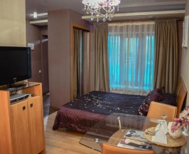 Однокомнатный номер с удобной мягкой мебелью, большой двуспальной кроватью, журнальным столиком и шкафом для одежды, располагает к себе спокойствием и приятной уютной домашней обстановкой.
