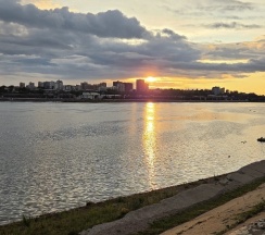 Отличный вид из окон на Ангару, Завтраки с большим выбором на первом этаже.
