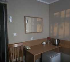 Заселили раньше на 2 часа, чему были рады несказанно. На ресепшене девушка была очень доброжелательна и мила. Сразу предложила заселиться, не дожидаясь 14 часов. Просто чудо. Сразу лайк. Два перелета подряд очень сильно сказались на силах. Оформили быстро. Номер был чистый, опрятный. На окнах москитная сетка. Кондиционер. Чайник, стаканы, чашки. На этаже кулер с холодной и горячей водой. Ванная свежая, чистая. Полотенца 3 штуки на человека. Шампуни, гели для душа. Все было скромно, но чистенько. Вид из окна на город был тоже приятный. Я протерла москитную сетку влажной салфеткой, чтобы убрать пыль, сетка была достаточно запыленной. На это надо обратить внимание персоналу. У кондиционера возможно тоже не помешало бы прочистить фильтр. Но эта передышка помогла восстановить силы перед следующим полетом. Помыться, поспать, попить чаю. Внизу в кафе подкрепились пельменями с очень интересной подачей в виде походного мини котелка. Так как завтрак был оплачен, но улетали ночью, поэтому выдали сухой паек в виде сэндвичей и сладкого. Самое главное, гостиница находится через дорогу от аэропорта, что очень облегчает передвижение.