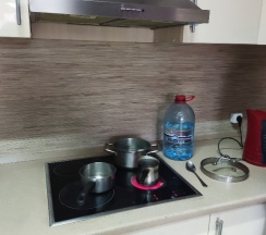 Кухня тоже чистая, всё есть и кастрюли и сковородки, доски, ножи, венчики. В общем можно там готовить и плитка хорошая!