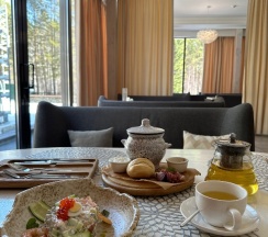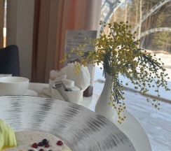 Ресторан отеля заслуживает отдельной похвалы — красивая подача, в меню представлено много традиционных блюд байкальской кухни.