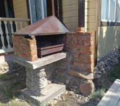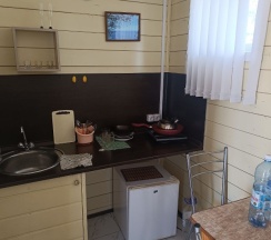 Отличная база. Адекватная своя территория с детской площадкой. Хороший шведский стол на завтрак (за отдельную плату).У домика отличная шумоизоляция, вместительная терасса со столиком и навесом. У каждого домика своя мангальнач зона. Объемный бак на 100 литров. Индукционная плита с чайником и сковородкой. Посуда, холодильник. Даже полка с детскими книжками была.
