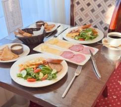 В ресторане чисто, приятная музыка, вкусные и красиво оформленные блюда. Завтрак разнообразный, тоже все вкусно и эстетично. Мы с мужем захотели завтрак в номер, я собрала из шведского стола, что бы хотелось поесть, и нам все принесли.