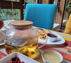 Отель небольшой, уютный, вкусные завтраки. А какой чистый воздух и вид на хвойный лес 😍.
