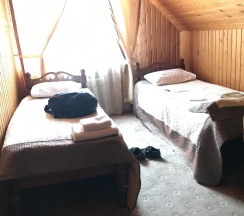 Душ и туалет общий на 2 номера, в душе не оказалось горячей воды(возможно это временно), нет одноразовых тапочек в номере, есть телевизор но из каналов "суббота" и несколько коммерческих каналов типа shop end show.В целом в отеле чистенько, персонал оперативно реагирует на пожелание посетителей, тепло, уютно. Завтрак на выбор, очень вкусно. Столовая большая и светлая. В целом остались положительные эмоции от проживания, за исключением отдельных моментов, описанных выше.