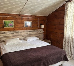 Домики мне очень понравились. Номера уютные и теплые. В ванной комнате все есть. Не нужно задумываться о зубной щетке и т.к. Кровать удобная. На территории есть парковочные места для машины. И баня прекрасная.Спасибо!