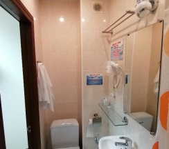 Отличная гостиница, номер соответствует заявленному, все чистенько, мягкая кровать, белые простыни, разовые принадлежности (шампунь, зубная щетка, тапочки) имеется. Каждый день обязательно 0.5 л. бутилированная вода. Рекомендую.