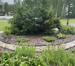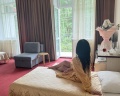 Отдыхаю с двумя детьми и мамой. Номер новый, мы живем в люксе, в номере есть полотенца для тела, рук, ног, пеленка для процедур, одноразовые гели для душа и шампуни. Территория ухоженная, есть козы, овечки, куры, детская площадка и футбольное поле. Газон постоянно косят. Еда вкусная. Хорошая детская комната с воспитателем (открыта до 18.00).И еще есть зона где можно постоянно играть. Рекомендую.