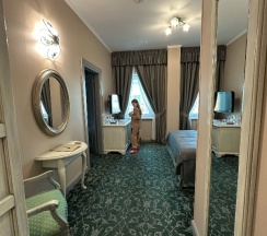 Отдыхали с мужем целую неделю. Номер люкс Боярский. Отличный отель в центре. Окна выходили во двор и частично в городской парк. Разнообразный завтрак по типу шведского стола, а вечером чаепитие с булочками. Есть небольшая спа-зона с бассейном, сауной и хамамом. Отдельная благодарность за массажи. Очень профессиональный массажист. Наслаждались с мужем всю неделю. В номерах все есть, отличный сервис. Благодарю всех девушек на ресепшене и в ресторане за доброжелательность.