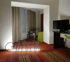 Гостиничный комплекс, расположен рядом с лесопарковой зоной, красивое место, удобное местоположение. Имеется парковка, конференц зал, фитнес центр, цены приемлемые. Конференц зал оборудован для проведения конференций, презентаций.