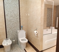 Ванная больше среднестатистической квартиры, панорамные окна, просторные кровати, вкусный завтрак и приятное обслуживание.