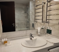 Отличный отель; останавливались на одну ночь, когда приезжали на хоккей) хорошее местоположение и комфортные цены. Отель огромный, есть спортзал и сауна 🧖🏼♀️ в номерах все для комфортного проживания и принятиях душа 🔥