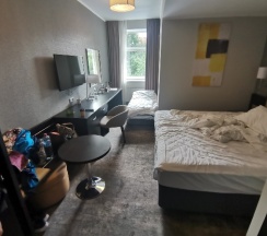 Жила в этом отеле три недели. Мне предоставили очень уютный номер с чудесной большой кроватью. Номер хоть и стандарт, но такое ощущение, что я жила в люксе. Ванна очень комфортная. Каждый день убираются чисто, полотенца чистые, ванные принадлежности исправно добавлялись. Стафф очень вежливый. Очень грустно было отсюда уезжать. Благодарю Вас за мой личный уют и гармонию в вашем отеле :)