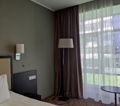 Приятный отель, если вы путешествуете на машине. Пешком сюда добраться комфортно, но далековато от центральных улиц. В номере просторно, было достаточно места для нашего ребенка побегать и поиграть перед сном. В стоимость входит круглосуточный спортзал и сауна. Единственный минус — телеканалы плохо работали, с визуальным шумом. Но это не проблема, если есть wi-fi и свой ноутбук.