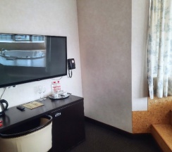 Общее впечатление положительное. Номер чистый, просторный, располагался на 11 этаже - соответственно огромный плюс для меня это прекрасный вид! В стоимость проживания входит посещение спа-центра на 3 этаже: 4 вида сауны и гидромассажные ванны. Сотрудники были любезны и рассказали про все сауны, какая температура и влажность. На завтраке был огромный выбор еды, все вкусно. Единственный минус, маленькая парковка, но мы приехали в тот день когда играла местная хоккейная команда и в округе машину было негде поставить.