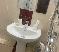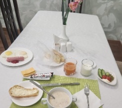 При подъезде к гостинице ожидали увидеть высокое красивое здание, согласно названию... Но в реальности оказался обычный 3-х этажный дом🫣🫣🙄... Но, уже при входе, начались удивления! — приятно оформленный вход, в прихожей идеальная чистота, оформили документы быстро! Ну, а когда зашли в номер, вообше офигели! - постели белоснежные, как только что из магазина, полотенца маленькое и большое (тоже белоснежные), разовые белые тапочки, кондер!, в ванной комнате все принадлежности, вплоть до зубной щетки с пастой, душевая кабина чистенькая, полотенцесушилка! На столике пожалуйста тебе кипяточек в чайнике с чайными пакетиками и сахаром, микроволновка, телевизор! И даже кофемашина с ароматным напитком, который готовит сама администратор и приносит его в номер! Все это мне напомнило гостиницу Hilton, когда мы были в Канаде. 😊 Столовая на 8 персон оформлена бесподобно приятно! Есть даже отпариватель для белья!