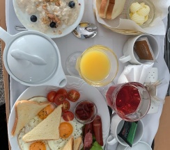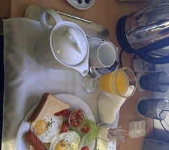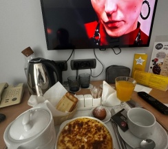 2. Уборка в номере в этот раз была только с моей просьбы. Возможно это было из-за того, что после завтрака я ушел по делам "мимо" ресепшена и администраторы не были в курсе, есть я в номере или нет. После прихода в номер через часов 6 поднос с завтраком всё ещё стоял на столе.