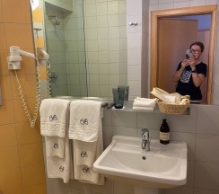 Уютный небольшой отель с вежливым молодым персоналом. В номере чисто, главное тихо. Завтрак принесли прямо в номер. Из минусов – это отсутствие съемной лейки в душе. Но, это на любителя. В номере не оказалось электрчайника, его нам предоставили сразу. Гладильная присутствует. Рекомендую.