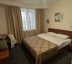 Размещение в офисном центре. Критично было наличие парковки. Оказалось, что парковка исключительно в ночное время. Пришлось оставлять машину напротив, на платной парковке. Администратору Карине огромная благодарность за помощь и компетентность. Завтрак в номер с хорошим кофе. Сам номер нормальный, удобный. Минус за странную парковку.