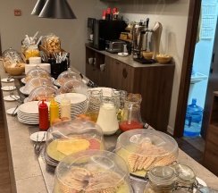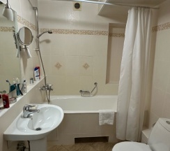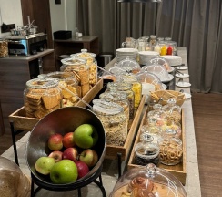 Просто восторг! Номер очень интересный! Тапки халаты, даже отдельно детские Тапки и халат! Завтрак шведский стол классический, все вкусно. А с 13.00 до ночи есть горячее (гречка) , суп, сэндвичи , сумки, овощи и даже пиво С чипсами! Очень рекомендую! Находка а не гостиница!