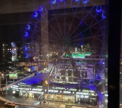 1. Грязное окно, честно смотреть на колесо обозрение было противно.