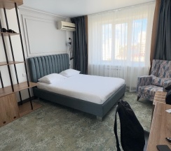 Шикарный отель, современный, чистый, приятный, номер достался с видом на колесо обозрения, завтраки шведский стол. Администраторам огромное спасибо Алие и Мадине. Напротив большой ТЦ, магазины, кафешки.