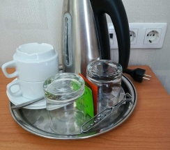 Кулер на этаже+ 1 бутылка воды в номере= не надо переживать про воду.