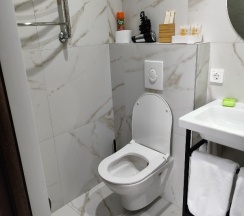 Из минусов отмечу -слышимость между номерами и отсутствие душевой лейки