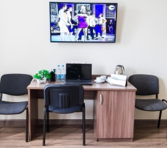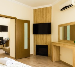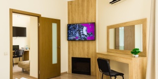 В номере: одна двуспальная кровать и раскладывающийся диван, кондиционер, холодильник, телевизором, транслирующим спутниковые каналы, двуспальная разъединяющаяся анатомическая кровать( Spring Box),кондиционер, отопление, шкаф/гардероб.