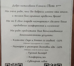 Отличная гостиница,уютный ресторан, Всё чисто, уютно, сделано со вкусом. Персонал вежливый и дружелюбный. Особенно хочу выразить большую благодарность Майи и Виктории. Спасибо коллективу Свояка за комфортное проживание, и вкусный обед.