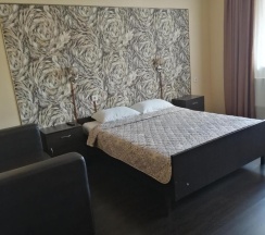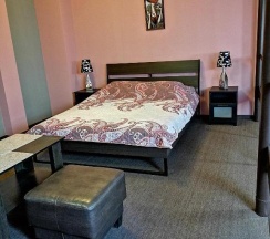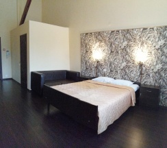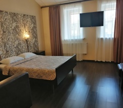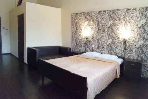 Номер 2-х местный, одноярусный. В номере одна двуспальная кровать, две тумбочки, диван, журнальный стол, 2 банкетки, шкаф для одежды, телевизор, холодильник. Туалет, душ. WiFi.