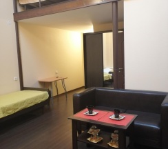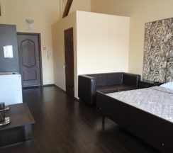 Номер 3-х местный, одноярусный. В номере одна односпальная кровать и одна двуспальная, 2 тумбочки, диван, журнальный стол, 2 банкетки, шкаф для одежды, телевизор, холодильник. Туалет, душ. WiFi.
