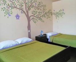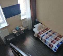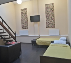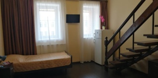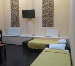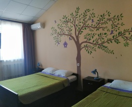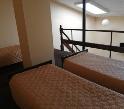 Номер 3-х местный, уютный, двух-ярусный. В номере три односпальные кровати, 3 тумбочки, диван, журнальный стол, 2 банкетки, шкаф для одежды, телевизор, холодильник. Туалет, душ. WiFi.