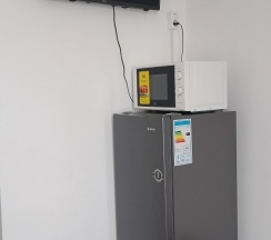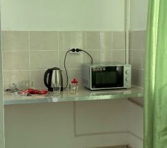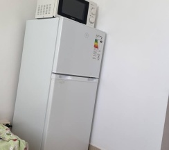 Холодильник пахнет чистотой, как только куплен, и микроволновка чистая красивая, набор посуды необходимой, всё чистое. Шторки красивые плотные от солнца с утра, чтоб выспаться,