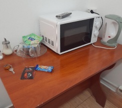В номере по отечественной чокопайке, кашка завариваемая, есть холодильник для пивка вот это прям самое то, редкость в гостиницах😉