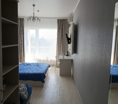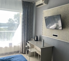 Доброе утро. Хочется оставить отзыв. Отель очень удобно расположен, рядом с аквапарком. И это было для нас важно. Можно спокойно пройтись пешком. Приехали в 22.30 нас встретила с улыбкой вежливый администратор. Номер не был заранее бронирован. Но для нас нашли комнату. Дети были довольные комнатами. Чистые, уютные и есть всё необходимое. Кондиционер, что не мало важно. Холодильник, чайник и плита. Кровать огромная и удобный диван. Чистое постельное белье и полотенца выдали сразу. А балкон какой классный. Пить шампанское на качели и любоваться ночной красотой, было божественно. Утреннее кофе и хороший душ оставили только позитивные впечатления. Обязательно приедем ещё.