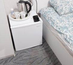 Из плюсов. По факту, если развернуть диван, то можно и в четвертом в этом номере жить. В номере есть свой душ и туалет, пластиковый чайник, небольшой холодильник, ТВ (не включали), как ранее сказано, кондиционер, одноразовые тапочки и даже балкон! В общем коридорчике есть так же кулер с водой и СВЧ печь. Номер чистенький, ремонт и мебель достаточно новые. Много сдвоенных розеток 220 В, в том числе около прикроватных тумбочек. В туалете есть отдельно включаемый вытяжной вентилятор. На балконе есть довольно большая пепельница. Есть своя парковка для авто. Сотрудница на ресепшене позитивная.