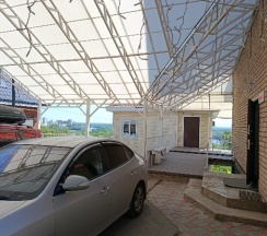 Парковка небольшая. Имеется участок с крышей на две машины и участок без крыши так же на пару машин около здания гостиницы.